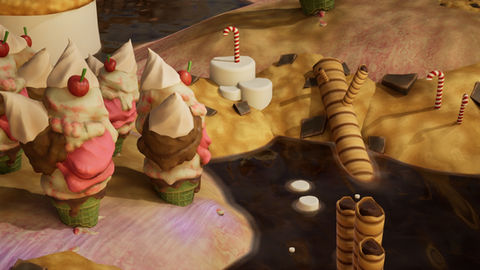Inspired by the world inside Wonka's factory in Charlie and the Chocolate Factory, this project seeks to push the limits of real-time materials in Unreal Engine 5. Some of the materials depicted include the Hot Chocolate Lake, Cookie, and Candy Cane.